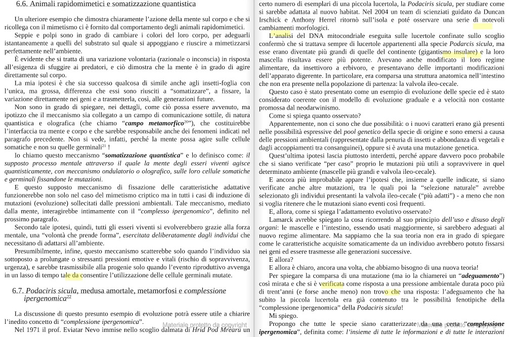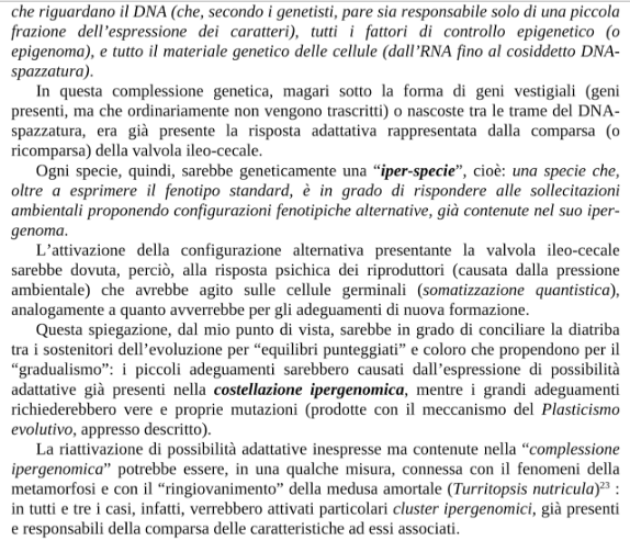 Perché una cosa è certa: se non ci sono prove che i processi bio-chimici presentino aspetti finalistici (teleologici), non ci sono tuttavia dubbi sul fatto che il comportamento umano - e, in misura decrescente a ritroso sulla scala evolutiva, anche quello di altre specie animali - sia caratterizzato proprio dal regime finalistico di molte delle sue attività. Per cui non ci sono ragioni per escludere che il finalismo, pur non essendo una proprietà della materia biologica, sia però una proprietà della mente, che la mente possa interagire con la materia biologica, ...e che dunque le cosiddette "mutazioni" non siano delle trasformazioni del tutto casuali, ma che siano invece influenzate in qualche modo dalla dimensione mentale (e non parlo, naturalmente, di volontà cosciente) e dal suo carattere spiccatamente finalistico.